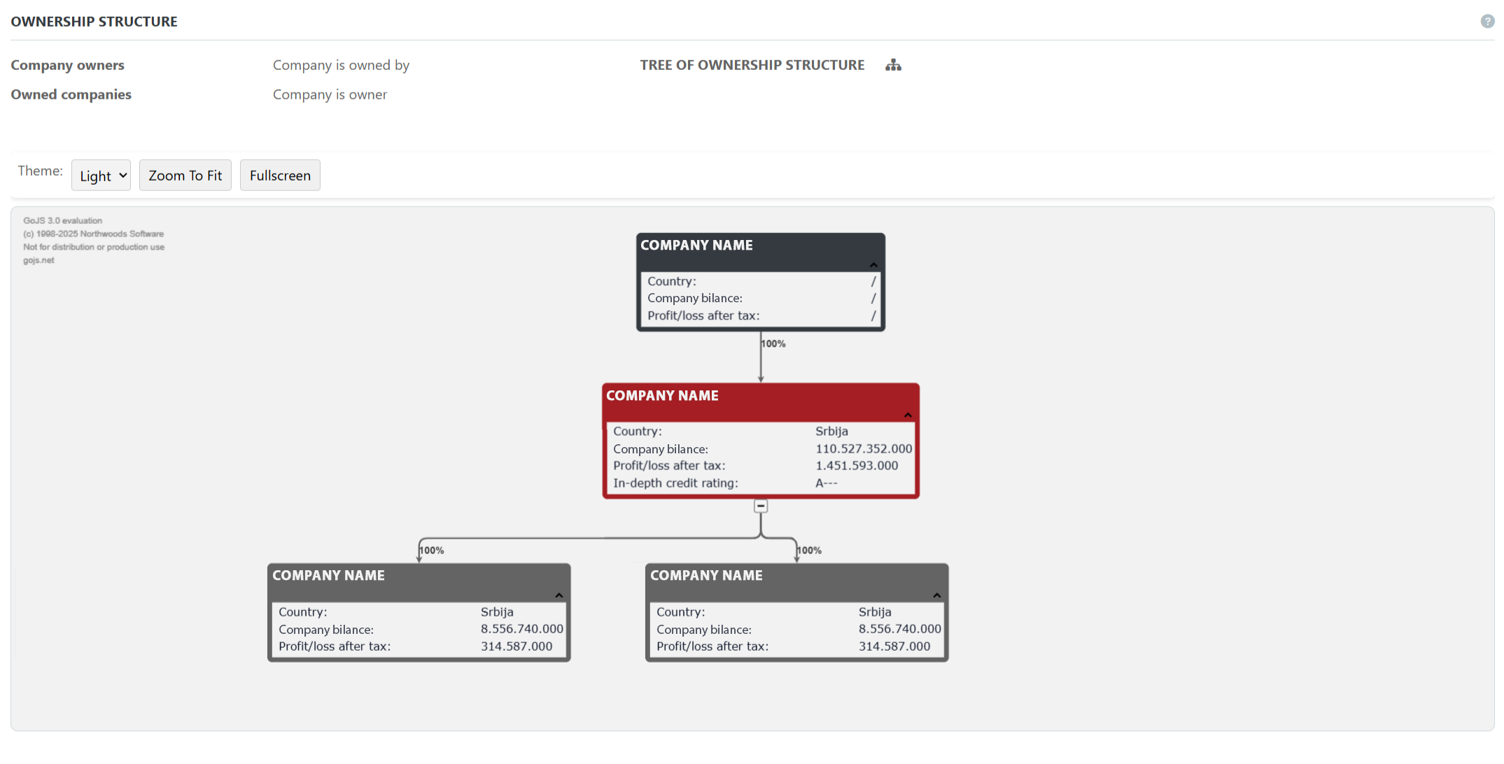 Pruža transparentan prikaz povijesti vlasništva i upravljanja određenom tvrtkom, kao i razinu rizika tvrtki povezanih s njom.