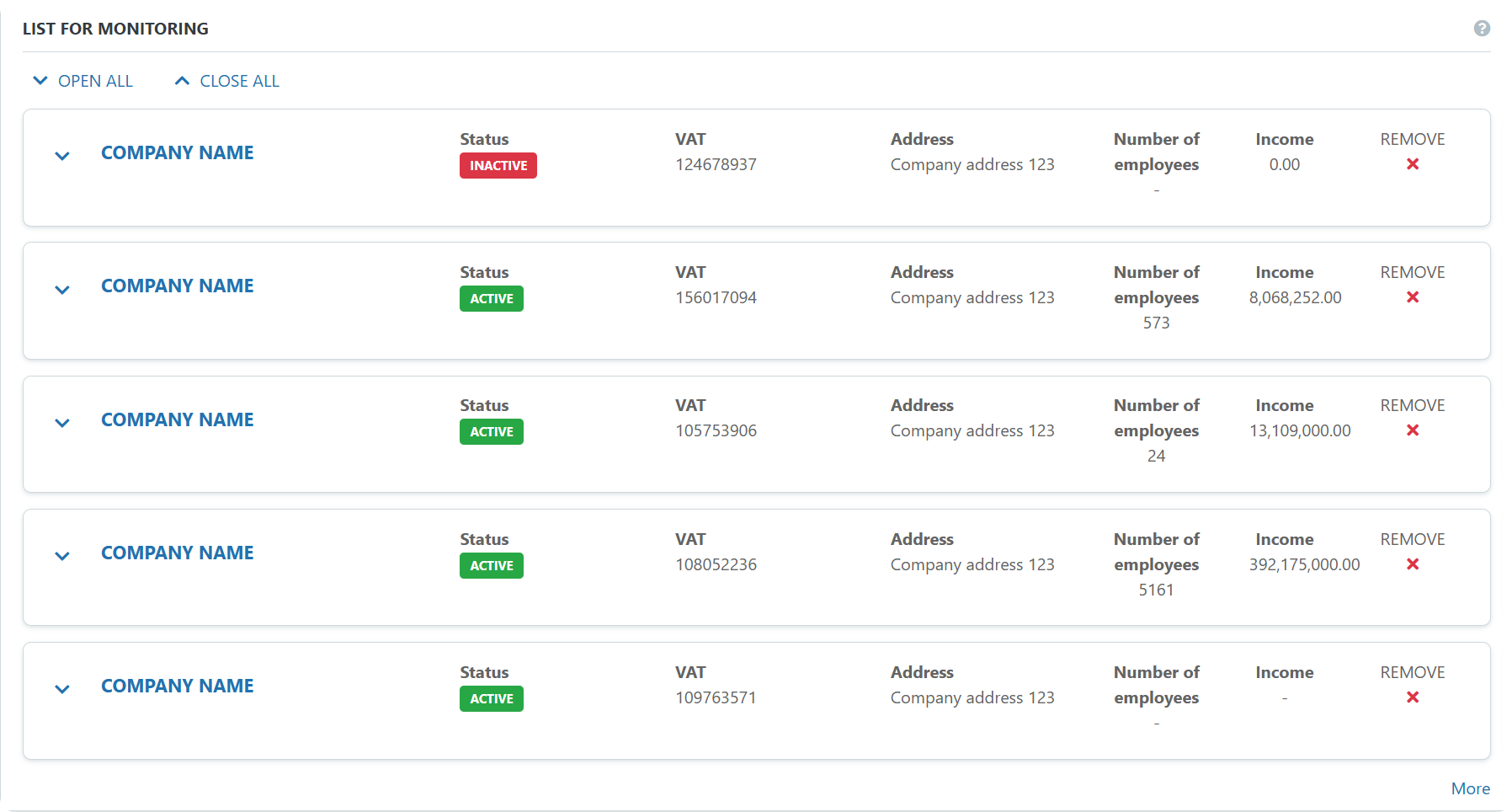 CompanyWall Business nudi precizne i ažurirane podatke o bonitetu, financijskim izvješćima i vlasničkim strukturama, čime olakšava kontrolu rizika i jača sigurnost poslovnih odluka. Velike tvrtke mogu pravovremeno prepoznati nestabilne subjekte i spriječiti prekide u poslovanju.